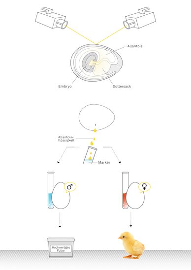 - 6 Weissmann, A., Reitemeier, S., Hahn, A., Gottschalk, J., Einspanier, A. (2013): Sexing domestic chicken before hatch: A new method for in ovo gender identification. Theriogenology, 80, S. 199-205.