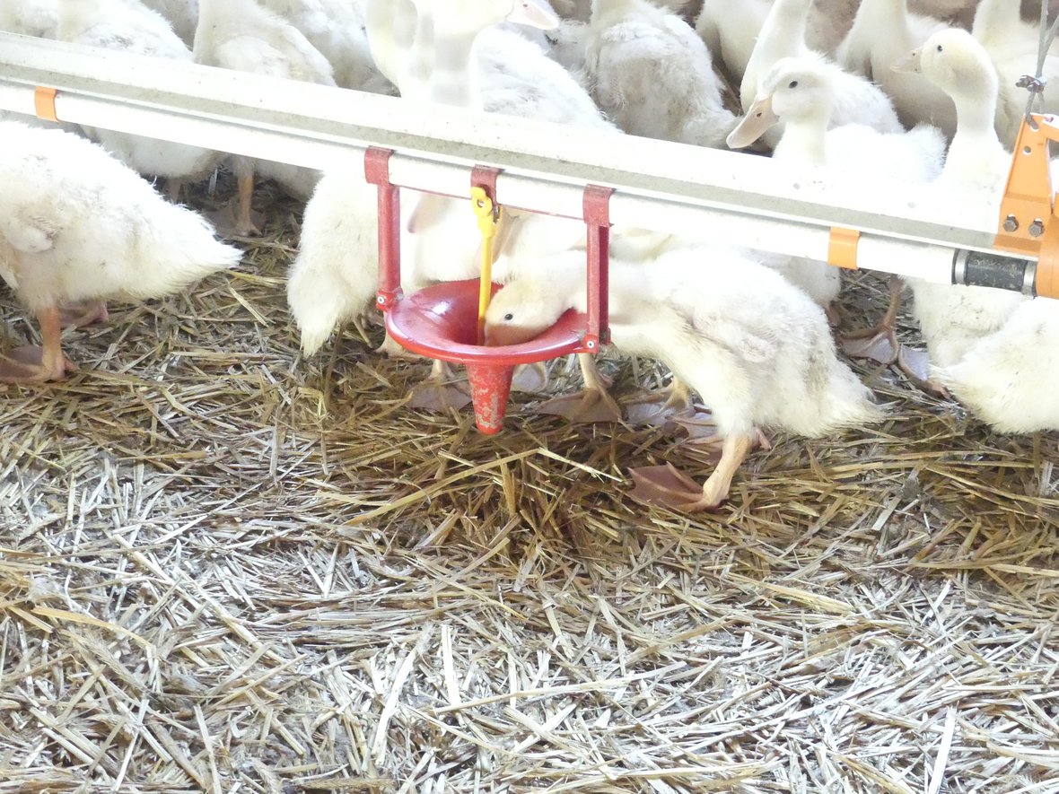 Bereits während des Einstallens können die Tiere durch akustische Signale (z. B. durch die Stimme der betreuenden Person) dazu animiert werden, sich möglichst zügig im gesamten Stallbereich zu verteilen. Entenküken reagieren sensibel auf Geräusche und werden der Stimme des Betreuers/ der Betreuerin folgen. Dadurch wird auch das schnelle Auffinden von Wasser und Futter sichergestellt.