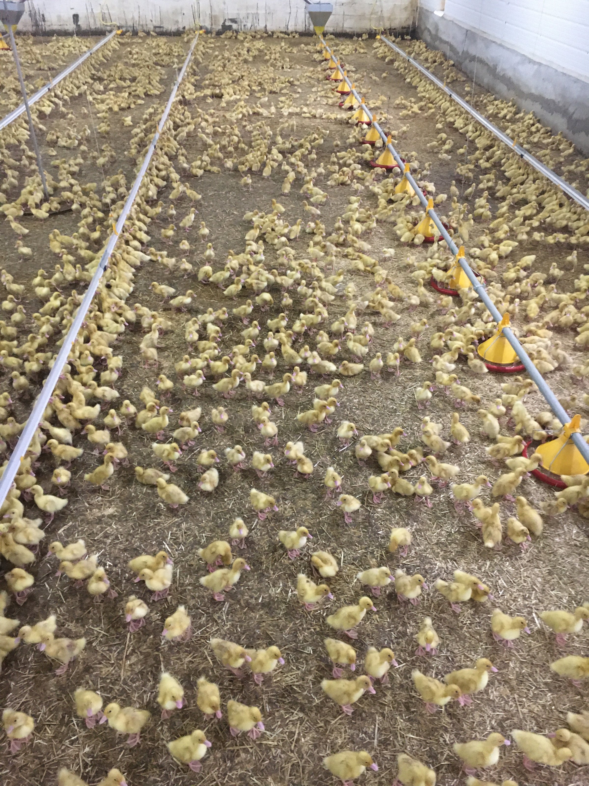 Die Aufzucht- und Mastphase findet bei Pekingenten in verschiedenen Ställen bzw. Produktionsstätten statt, da die Tiere unterschiedliche Ansprüche an die Haltungsbedingungen stellen, z. B. hinsichtlich Temperatur und Futter. Außerdem lässt sich so die Effizienz der Ausnutzung von Stallplätzen steigern und es können zwei Altersstufen gleichzeitig auf einem Betrieb gehalten werden.