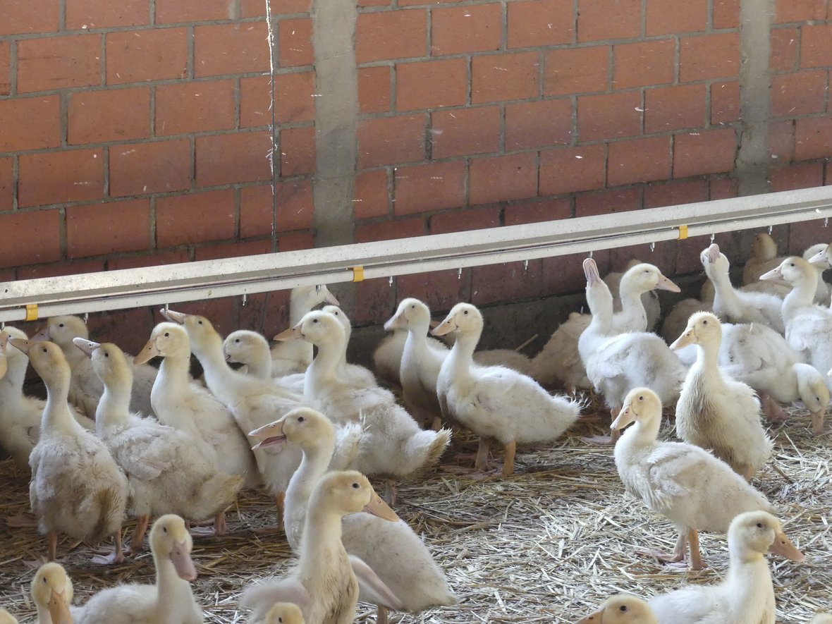 Die Besatzdichte in der Aufzucht und der Mast darf 20 kg Lebendmasse/m2 nutzbarer Fläche nicht übersteigen (vgl. Pekingentenvereinbarung).