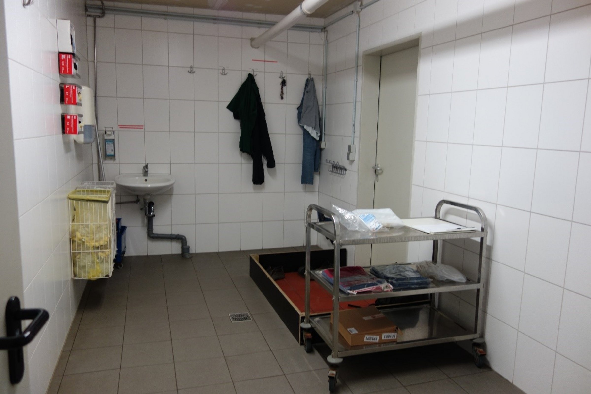 - Hygieneschleuse am Stalleingang (Schuhwechsel, Handhygiene, Schutzkleidung)