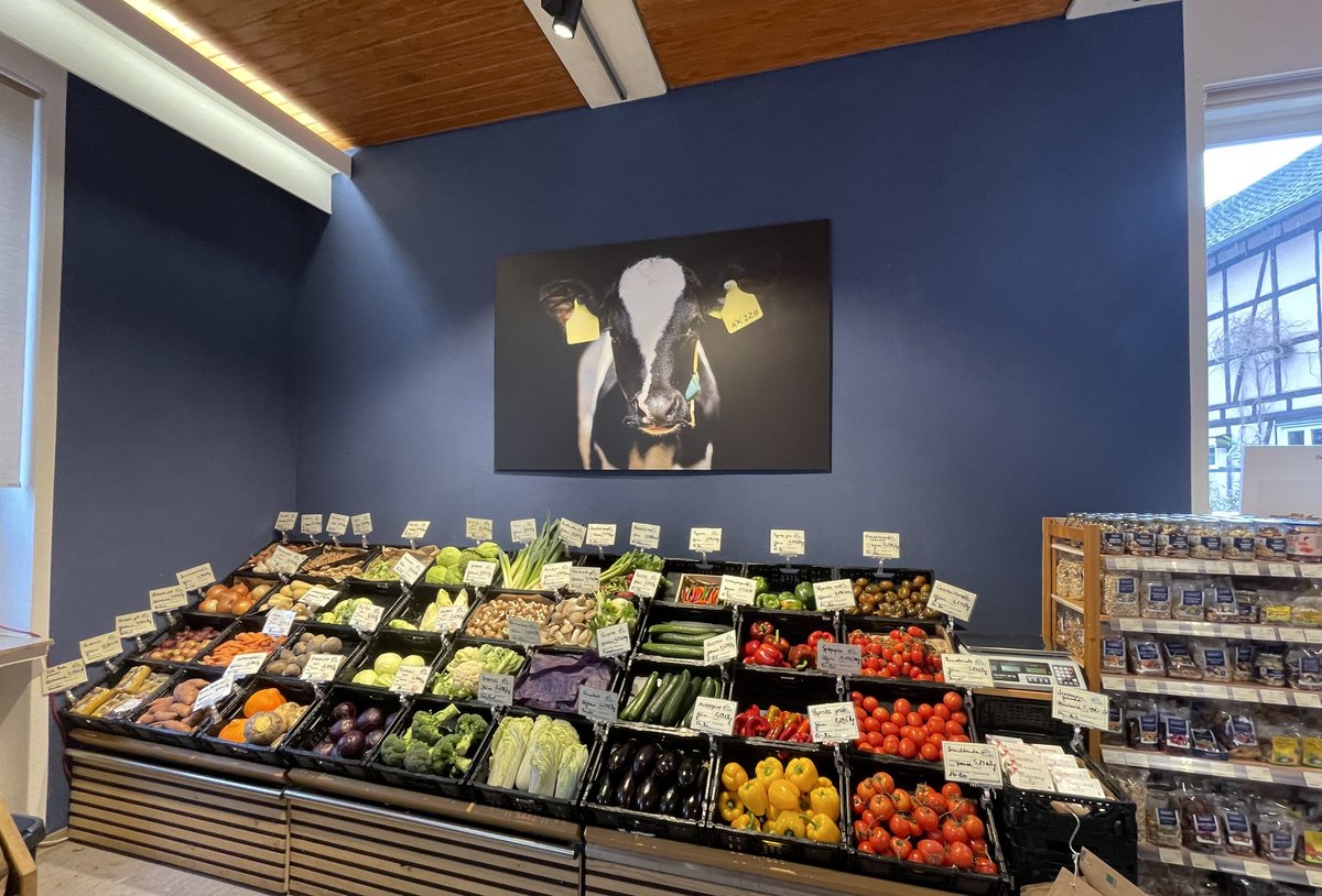 Gestärkt mit einem Frühstück startete die Gruppe am nächsten Tag mit einem Betriebsbesuch bei dem breit aufgestellten, ebenfalls ökologisch bewirtschafteten, Impulsbetrieb Gut Wilhelmsdorf. Zunächst stellten sich die beiden Betriebsleiterinnen vor und berichtetet über ihre Philosophie nach der 2023 erfolgten Übernahme des Betriebes. Dazu zählt auch der Umbau der Stallanlagen für ammengebundenen Kälberaufzucht. Während der Führung durch die Betriebsleiterin Maike Schumacher tauschten sich die Teilnehmenden über das Verfahren, sowie weitere Themen wie zum Beispiel Trächtigkeitskontrolle und Klauenpflege intensiver aus. Weiterhin durften die Betriebe von außen einen Blick in die Molkerei, die Abokisten-Packstation und den Hofladen werfen. Beim gemeinsamen Mittagessen kamen wieder zahlreiche Impulse für die zukünftige Netzwerkarbeit. Nach einer gelungenen Veranstaltung machten sich anschließend alle Teilnehmenden auf den Heimweg, um hoffentlich am 17. und 18. Juni 2025 wieder dabei zu sein, wenn es heißt: Netzwerktreffen der Impulsbetriebe Rind.