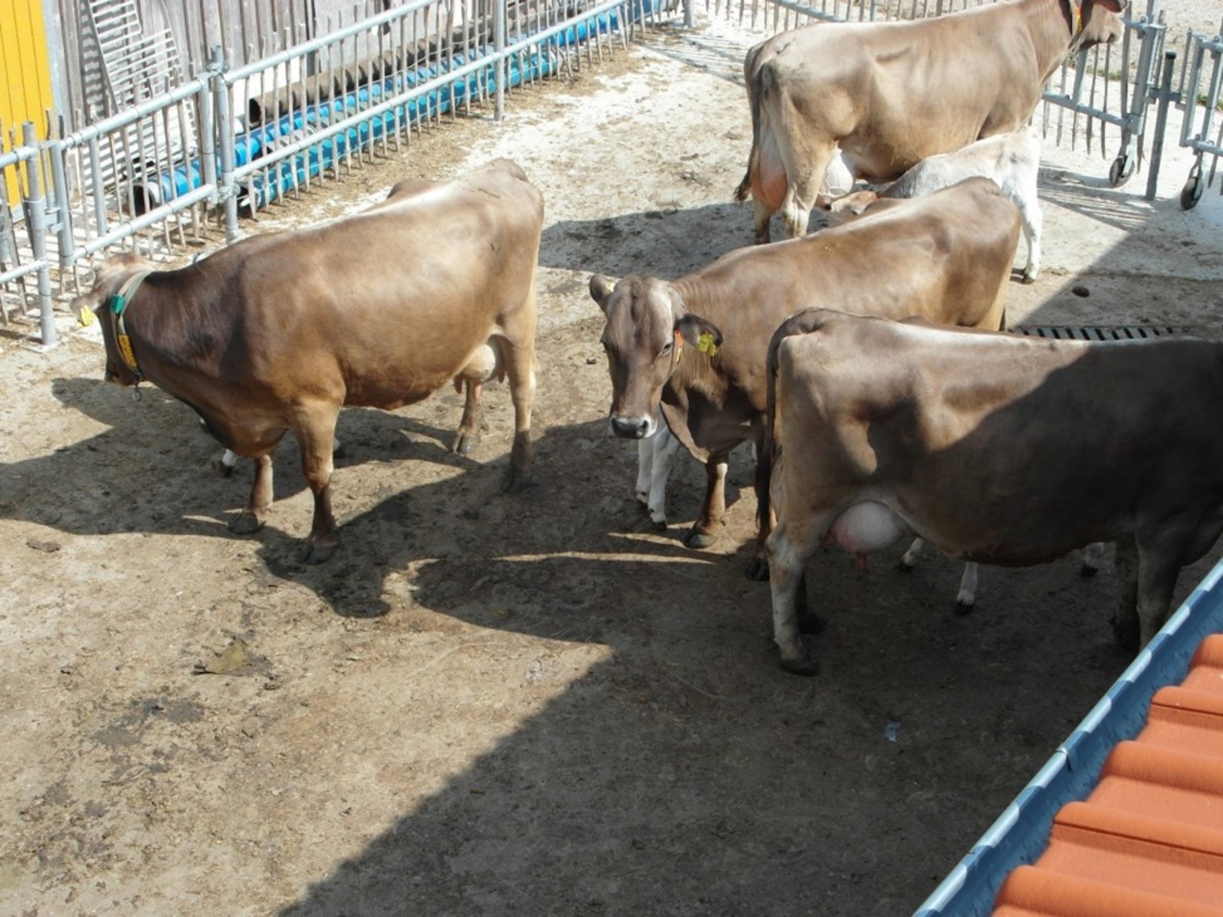 Mit vier bis fünf Wochen werden die männlichen Kälber verkauft. Davor kommen sie in die sogenannte „Trennungsbox“, die sich im Kuhstall in der Nähe des Melkstandes befindet. Wenige Tage vor dem Verkauf werden sie dort aufgestallt und haben noch Sicht- und Berührungskontakt zur Mutter. Es ist wichtig, dass sie sofort an den Eimer gewöhnt werden. Der Betriebsleiter machte in diesem Zusammenhang noch einmal sehr deutlich: „Entscheidend für das Gelingen und die rasche Umstellung auf den Nuckeleimer ist, dass die Kälber die Biestmilchgabe aus dem Eimer erhalten haben, denn daran scheinen sie sich zu erinnern und dann klappt das fast immer sofort.“