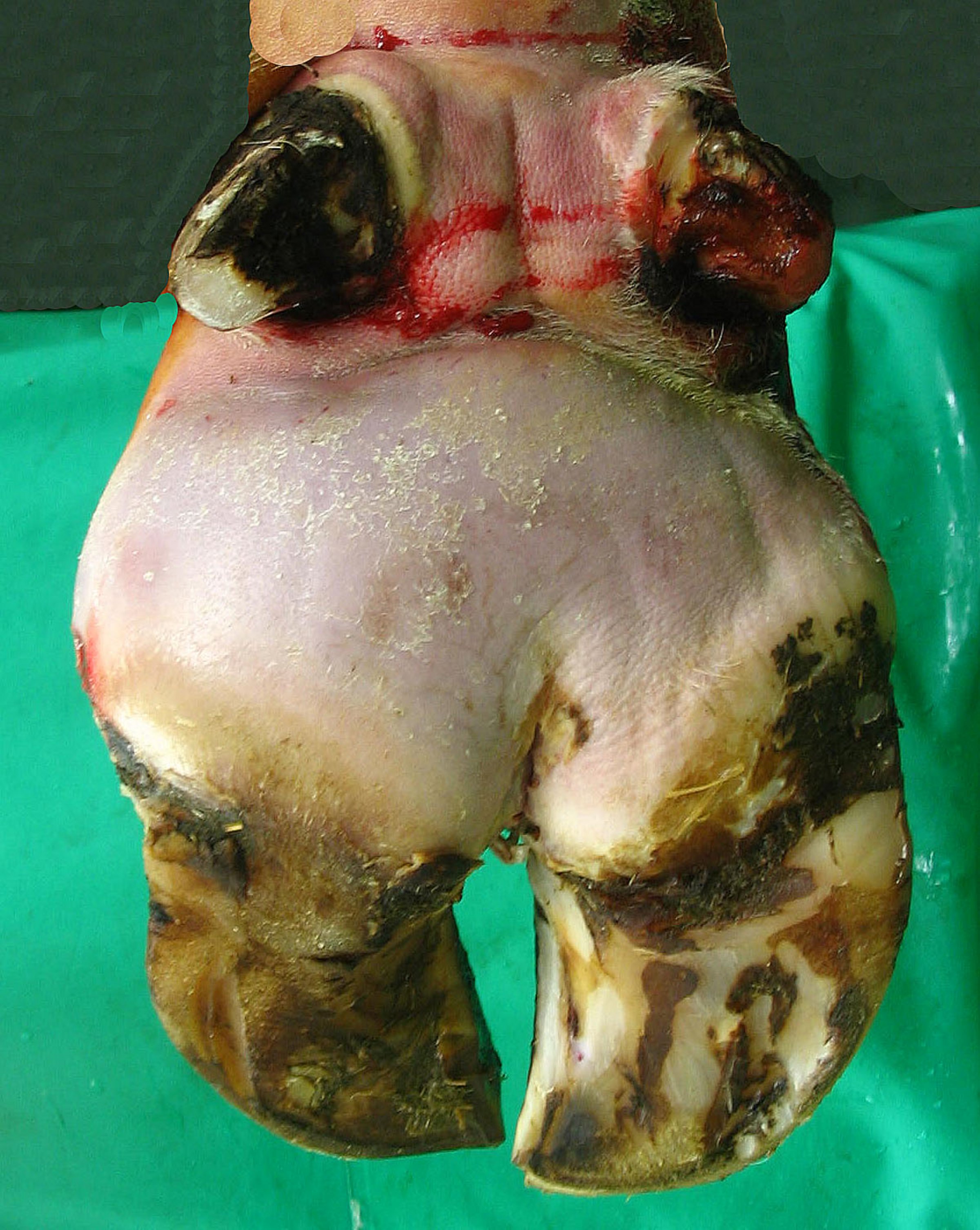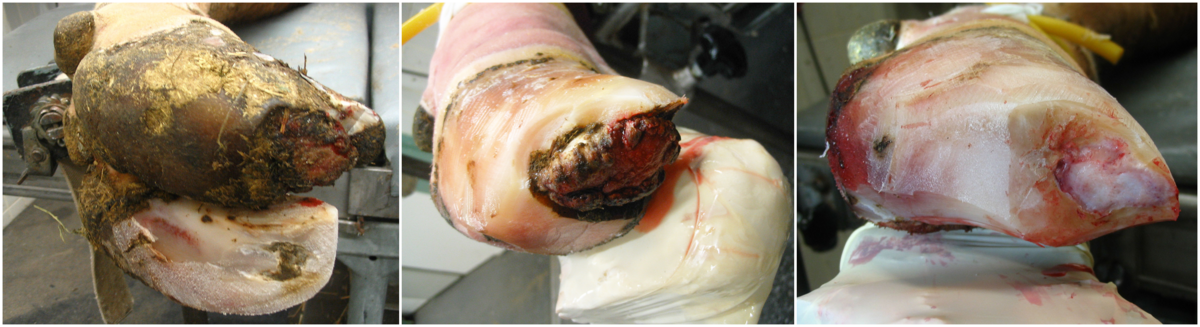 DD-infizierte Sohlenspitzengeschwüre sind Klauenerkrankungen, bei denen dringend ein Tierarzt hinzugezogen werden muss. An dieser Stelle soll für Landwirte und Klauenpfleger aber einmal kurz mit Bildern dargelegt werden, wie erfolgreich eine Operation sein kann. Es werden durch die Zusammenarbeit mit dem Tierarzt langanhaltende Schmerzen, Leiden und Schäden für die Tiere und in manchen Fällen auch der vorzeitige Abgang vermieden. Die Unversehrtheit wird ebenso wie die Transportfähigkeit in vielen Fällen wiederhergestellt.