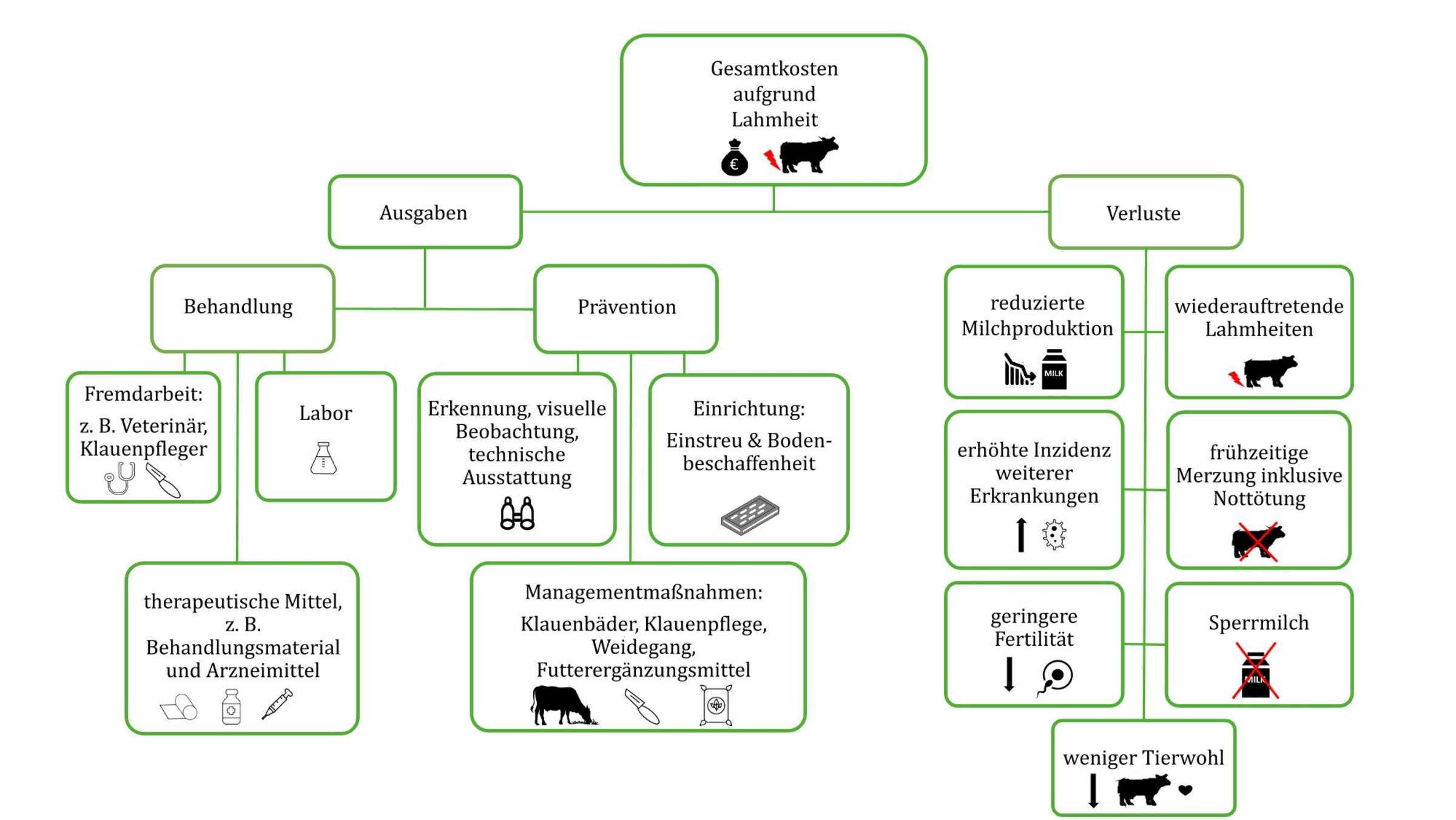 Abseits vom Tierwohl und der Tiergesundheit spielen die ökonomischen Folgen eine Rolle. Berechnungen ergaben Gesamtkosten von 130 bis 600 € pro Erkrankungsfall. Dies kann einen Verlust von 5 bis 10 % des Jahresgewinns pro Kuh für den Landwirt bedeuten.