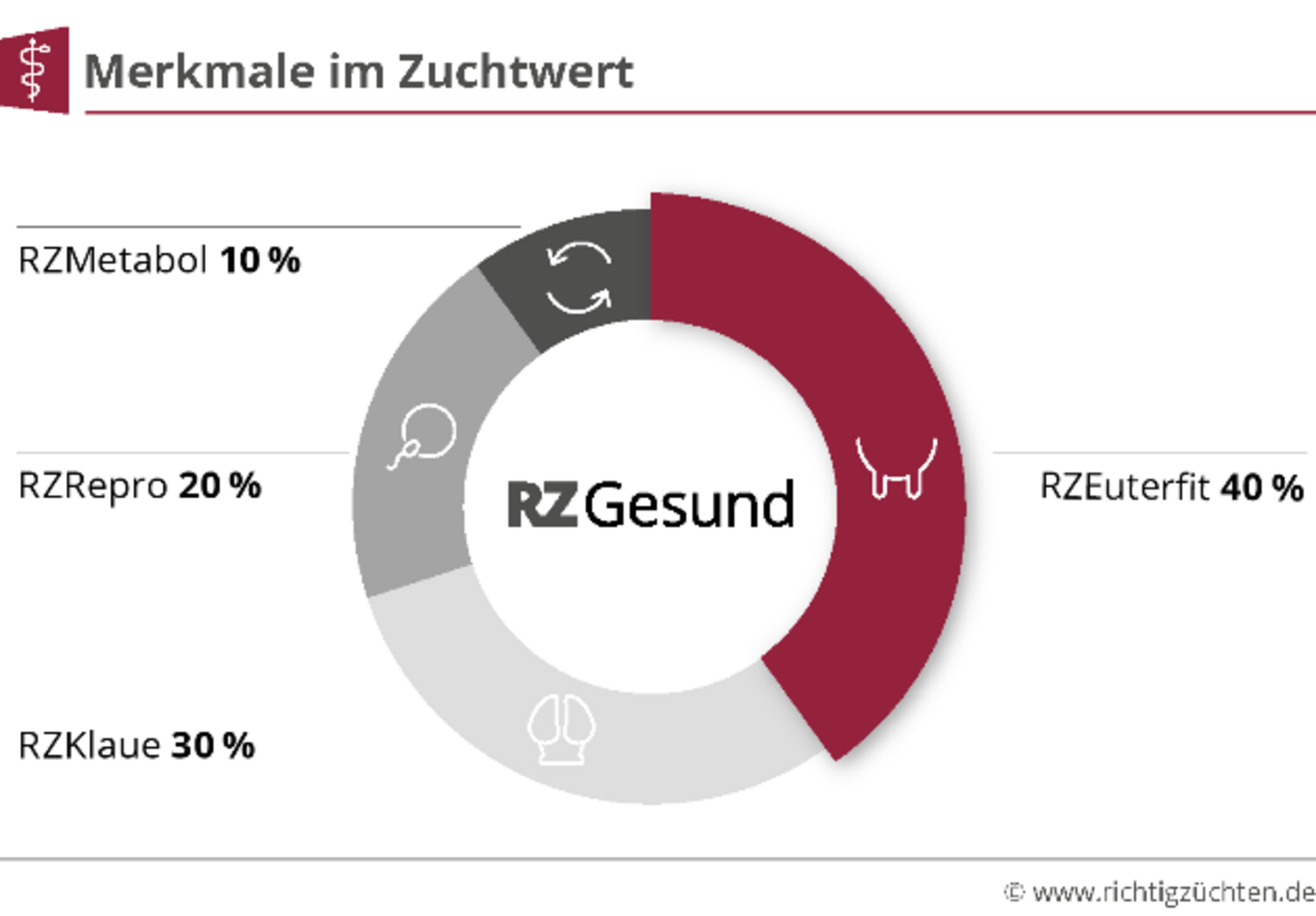 2005 begann mit einem Testherden-Projekt die digitale Erhebung von Gesundheitsdaten der Milchkühe, welche zur deutschlandweit erstmaligen Etablierung der Zuchtwerte Eutergesundheit (2015) und Klauengesundheit (2016) führte. Über die bundesweite Genotypisierung von mehr als 200.000 Kühen und den Abgleich mit Gesundheitsdaten stehen seit April 2019 deutschlandweit Zuchtwerte für die Vererbung von Euter-, Klauen- und Gliedmaßen- sowie Stoffwechsel- und Reproduktionsgesundheit zur Verfügung, die im RZGesund als Gesamtzuchtwert Gesundheit entsprechend ihrer wirtschaftlichen Bedeutung gewichtet werden. Dieser löste den seit 2010 bestehenden Zuchtwert RZFit ab, der sich auf die Fähigkeit eines Zuchtbullen bezog, wünschenswerte Fitnessmerkmale (funktionale Merkmale) an Töchterkühe zu vererben.