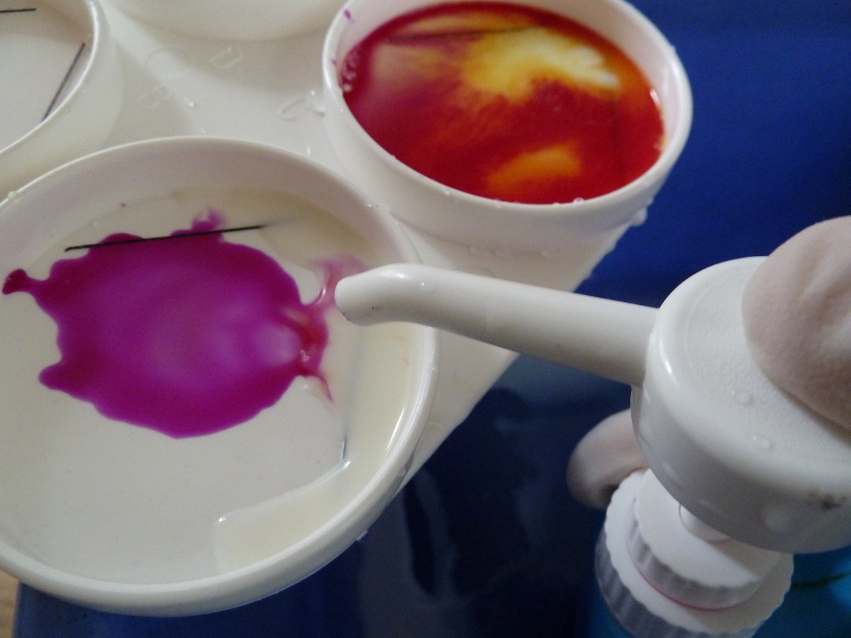 - Viskositätsveränderungen des Milch-Testflüssigkeitsgemischs (v. a. im Vergleich der Viertel untereinander)