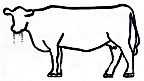 schnelle Atemfrequenz, geschlossenes Maul, Speichelfluss sichtbar
