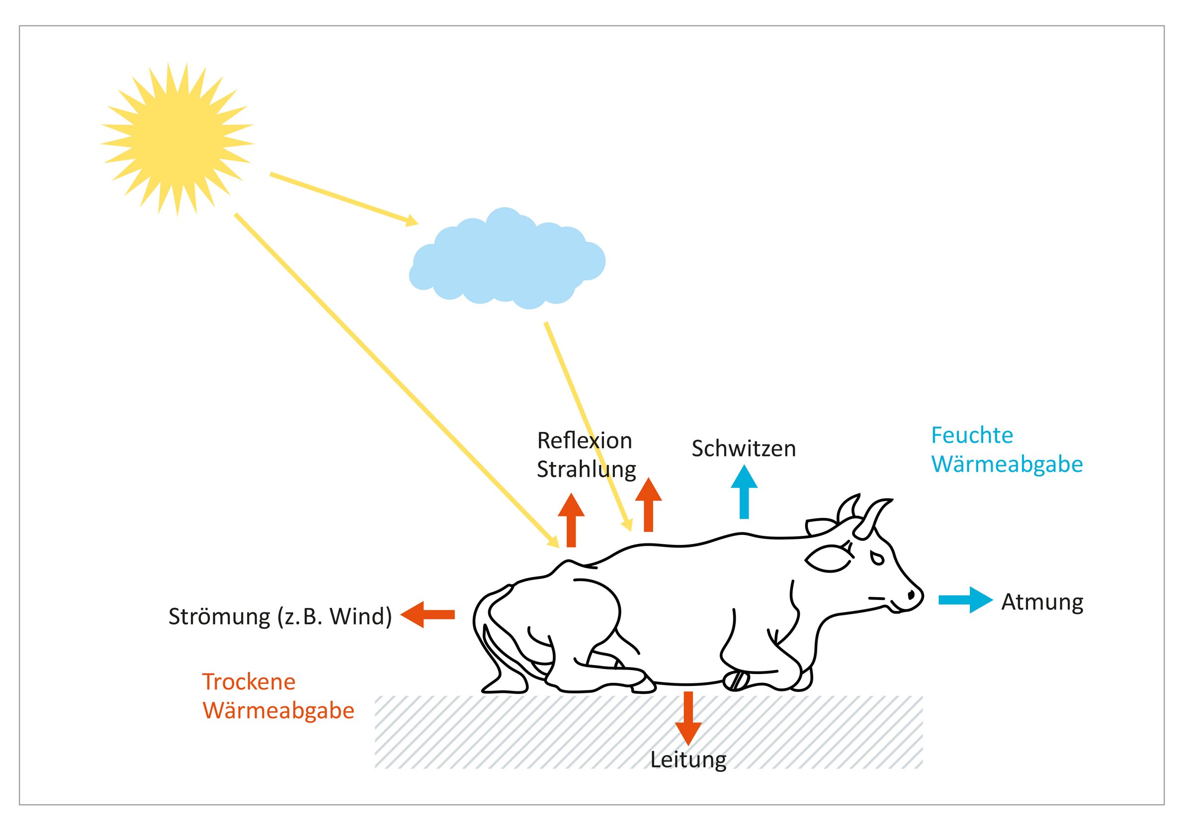 Die Thermoregulation, also die Anpassung der Körpertemperatur in Abhängigkeit von der Umgebungstemperatur, bewegt sich in Grenzen und kann durch Witterungsstress stark gefordert werden. Im folgenden Abschnitt werden die Grundlagen und Zusammenhänge der Thermoregulation beim Rind erläutert.