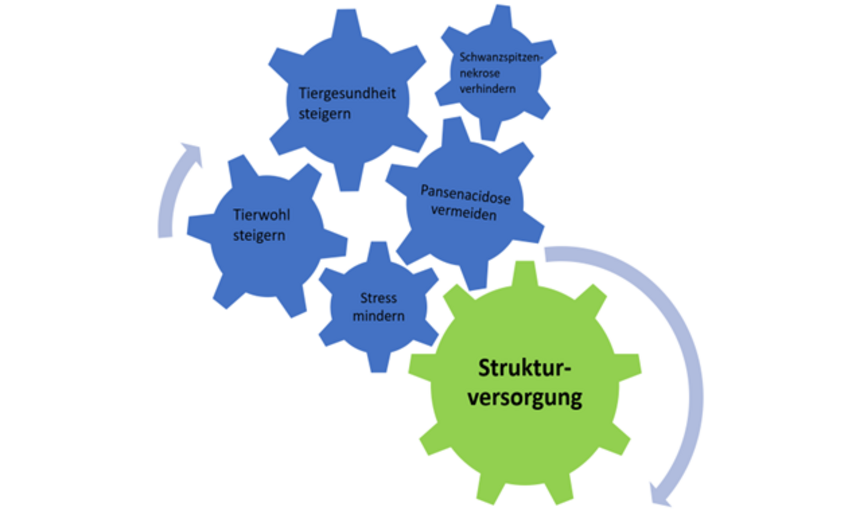 - Für die Beurteilung der Strukturwirkung eines Futtermittels bzw. einer Ration werden Informationen aus der chemischen Zusammensetzung (Fasergehalt, Verdaulichkeit) und aus der physikalischen Form (Länge und Beschaffenheit der Faser) benötigt.