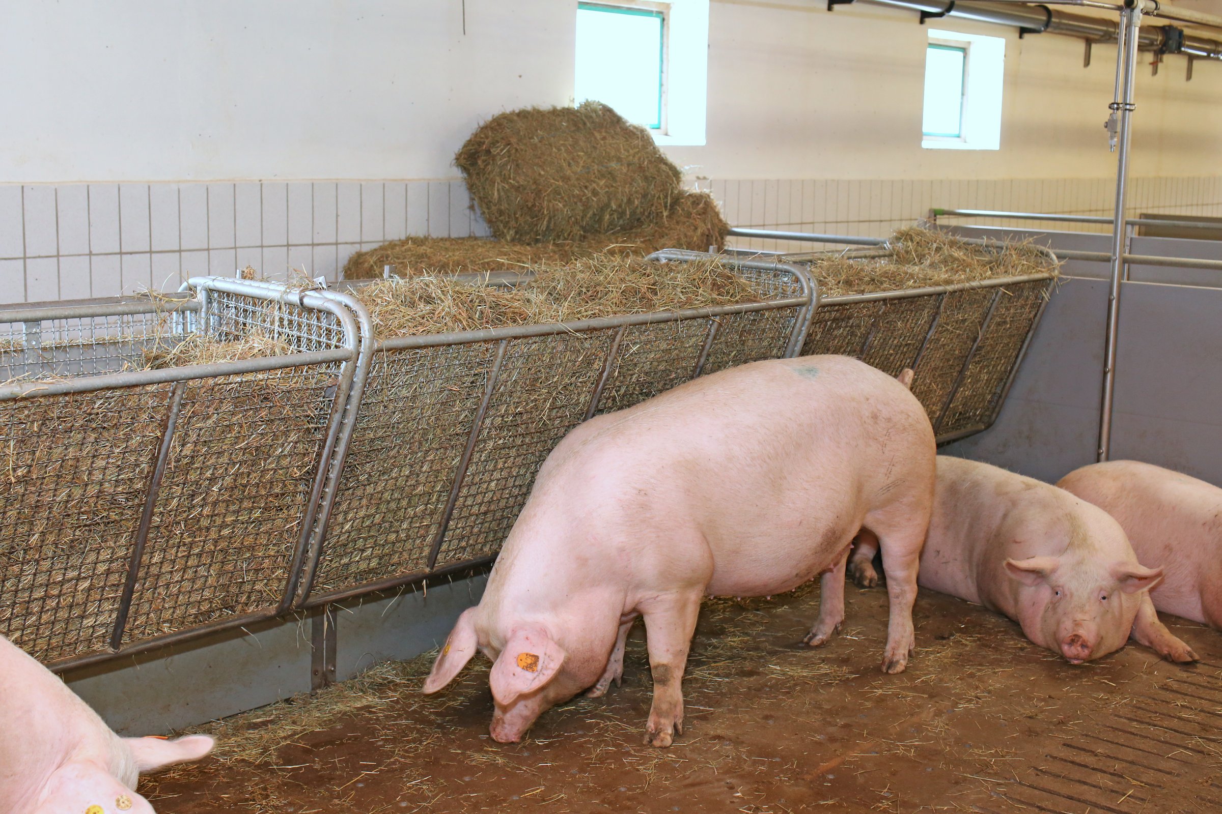 Zur Beschäftigung sind Raufutterraufen gut geeignet. Sie können für die Sauen z. B. mit Stroh oder Heu befüllt werden, wobei Heu eine höhere Akzeptanz besitzt als Stroh. Bei hygienisch einwandfreiem Material kann auch Grassilage angeboten werden. In der Biohaltung ist die Verwendung von Grundfutter wie z. B. Grassilage vorgeschrieben.