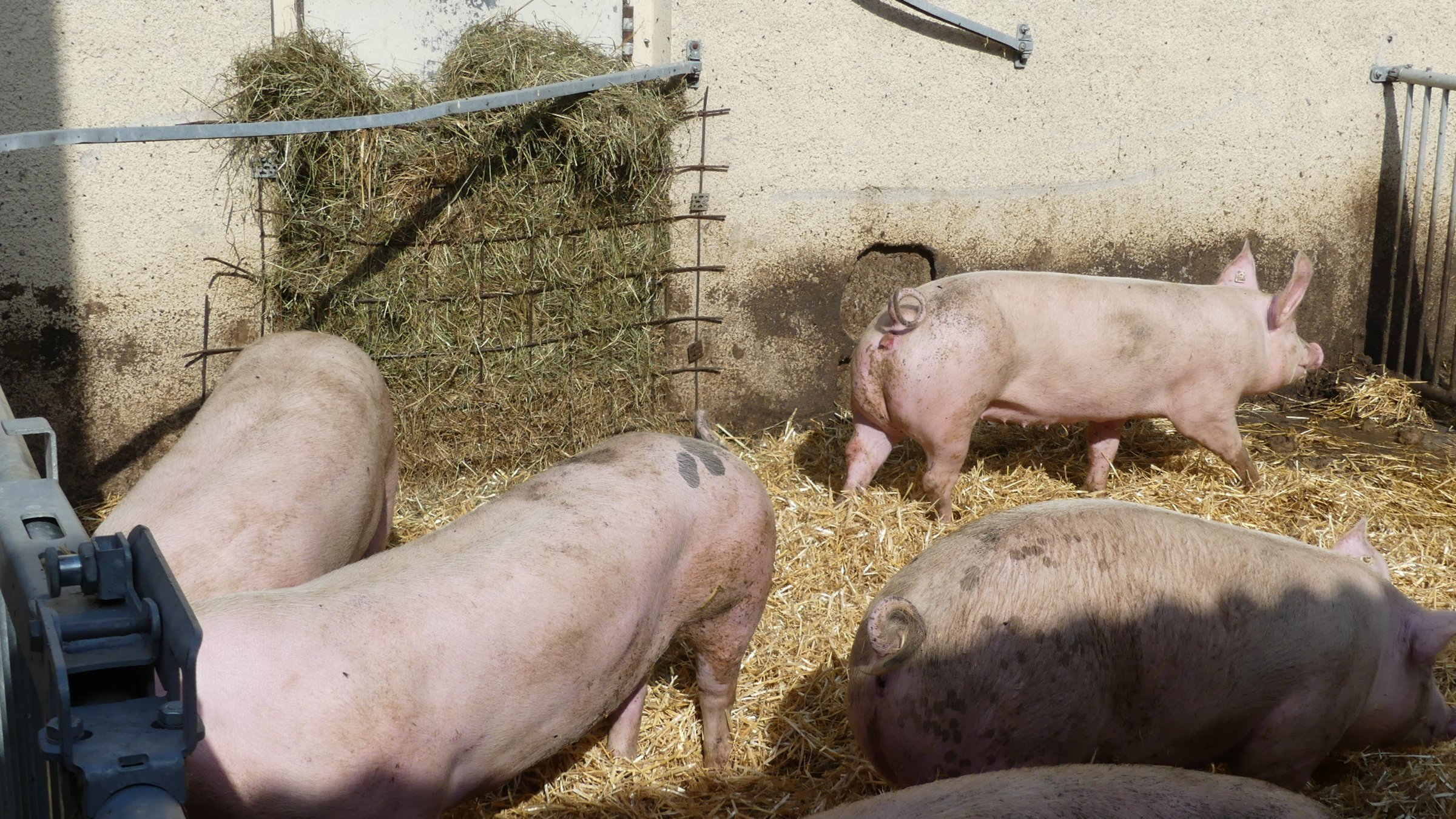 Auf dem Betrieb Urban, der auch am Projekt „EIP Schwein“ beteiligt war, wird die Bodenfütterung in manchen Stallbereichen aktiv angewendet.