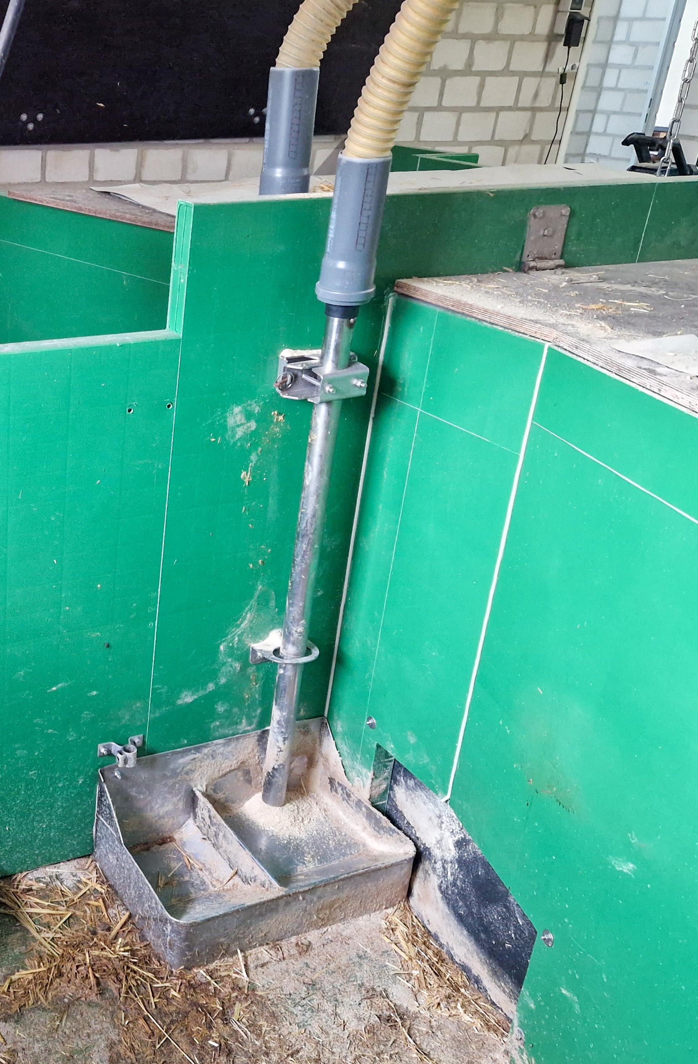 Unabhängig davon, ob die Zusatzfütterung über mobile Zusatztröge oder über ein fest installiertes System (z. B. Tassensystem), per Hand oder automatisiert erfolgt (Abb. 5 – 10), sind Frische und eine gute Hygiene das A und O. Zur Anmischung von Milchaustauschern oder Breifuttern muss stets frisches und sauberes Wasser genutzt werden. Die hohen Temperaturen im Abferkelstall führen sonst sehr schnell zu einem massiven Keimwachstum und Verderb der Milch bzw. des Beifutters! Auch der Fliegenbefall kann bei länger stehender Milch bzw. Brei extrem ansteigen.