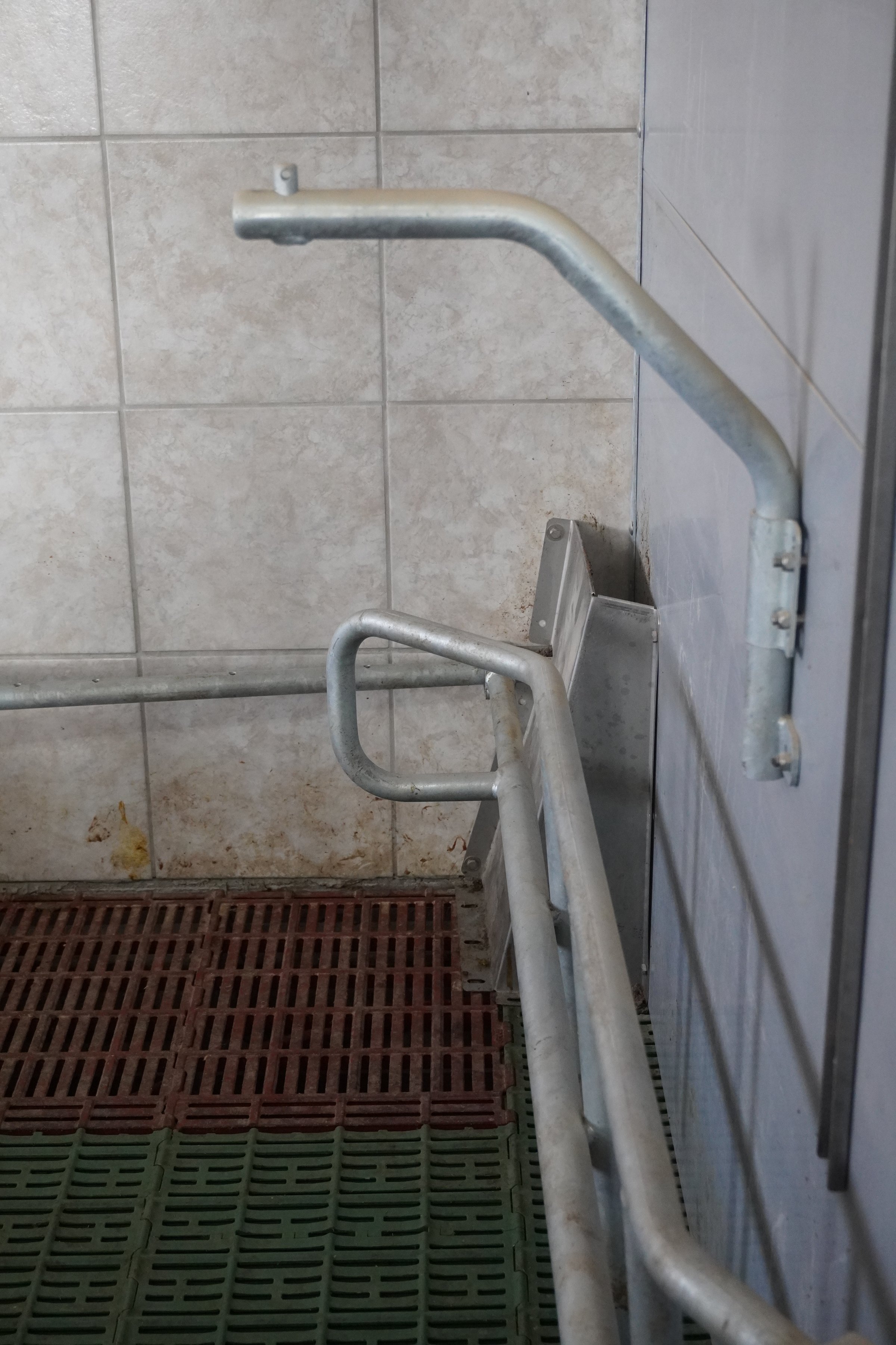 Die Funktionsbereiche lassen sich durch unterschiedliche Bodenbeläge strukturieren. Im Liegebereich wird der Boden dazu planbefestigt, im Kotbereich mit Spaltenboden ausgeführt (Abb. 16 und 17). Damit die Bucht sauber gehalten werden kann, was nur bedingt möglich ist, sollten Kotabwurföffnungen (Abb. 18) eingebaut werden. Die Unterscheidung von Liege- und Eliminationsbereich kann auch durch die Platzierung von Trog und Tränke so unterstützt werden, dass der Kotabsatz weitgehend auf den Spalten erfolgt 23, denn die Feuchtigkeit in der Nähe der Tränken animiert zum Absetzen von Kot und Urin.