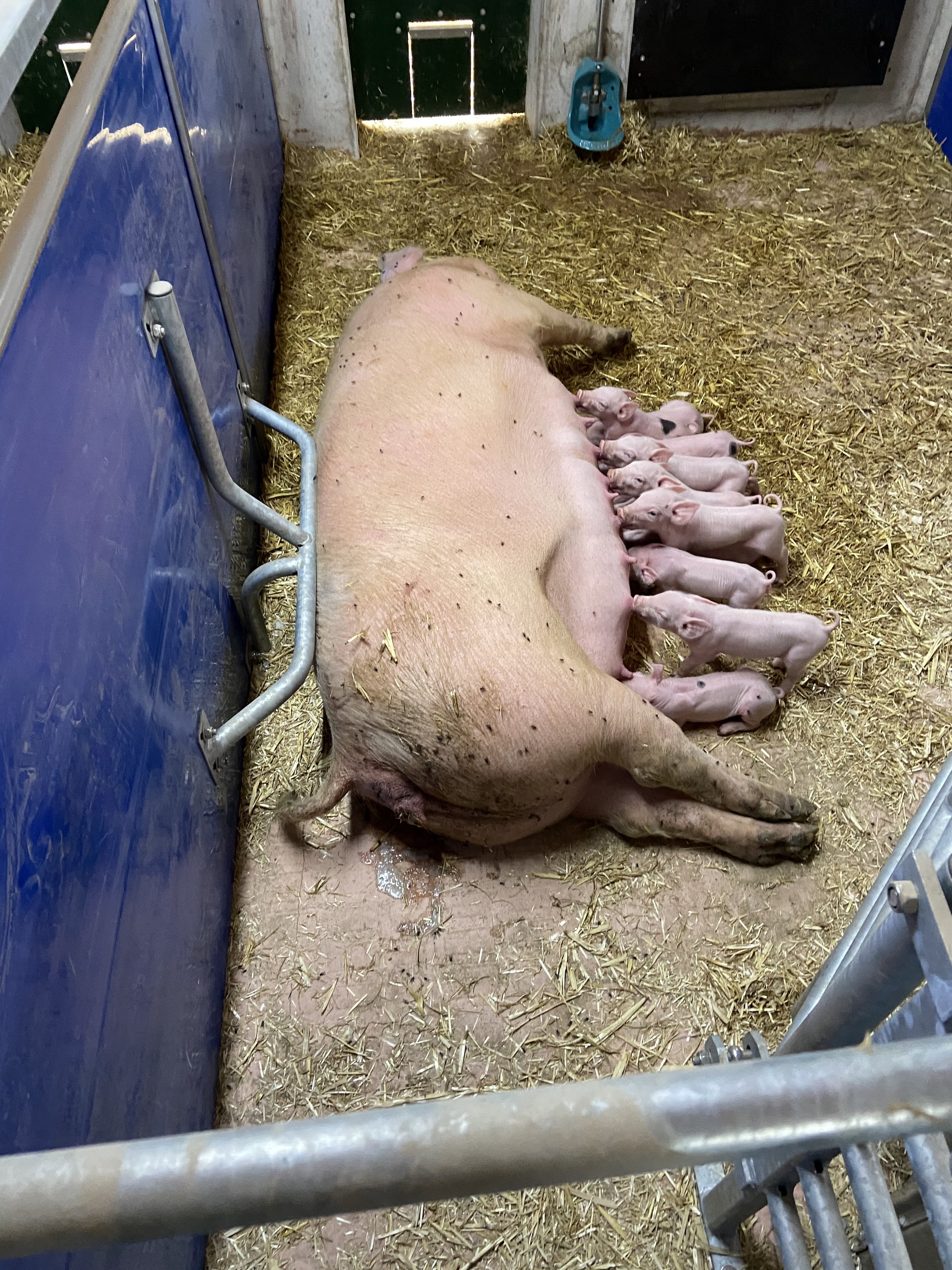 Abliegebügel/-hilfen sollten nicht direkt hinter dem geschlossenem Ferkelschutzkorb angebracht sein, damit Geburtshilfe ungehindert möglich ist (Abb. 34). Ein Abstand von mind. 50 cm, besser mehr, wird empfohlen.