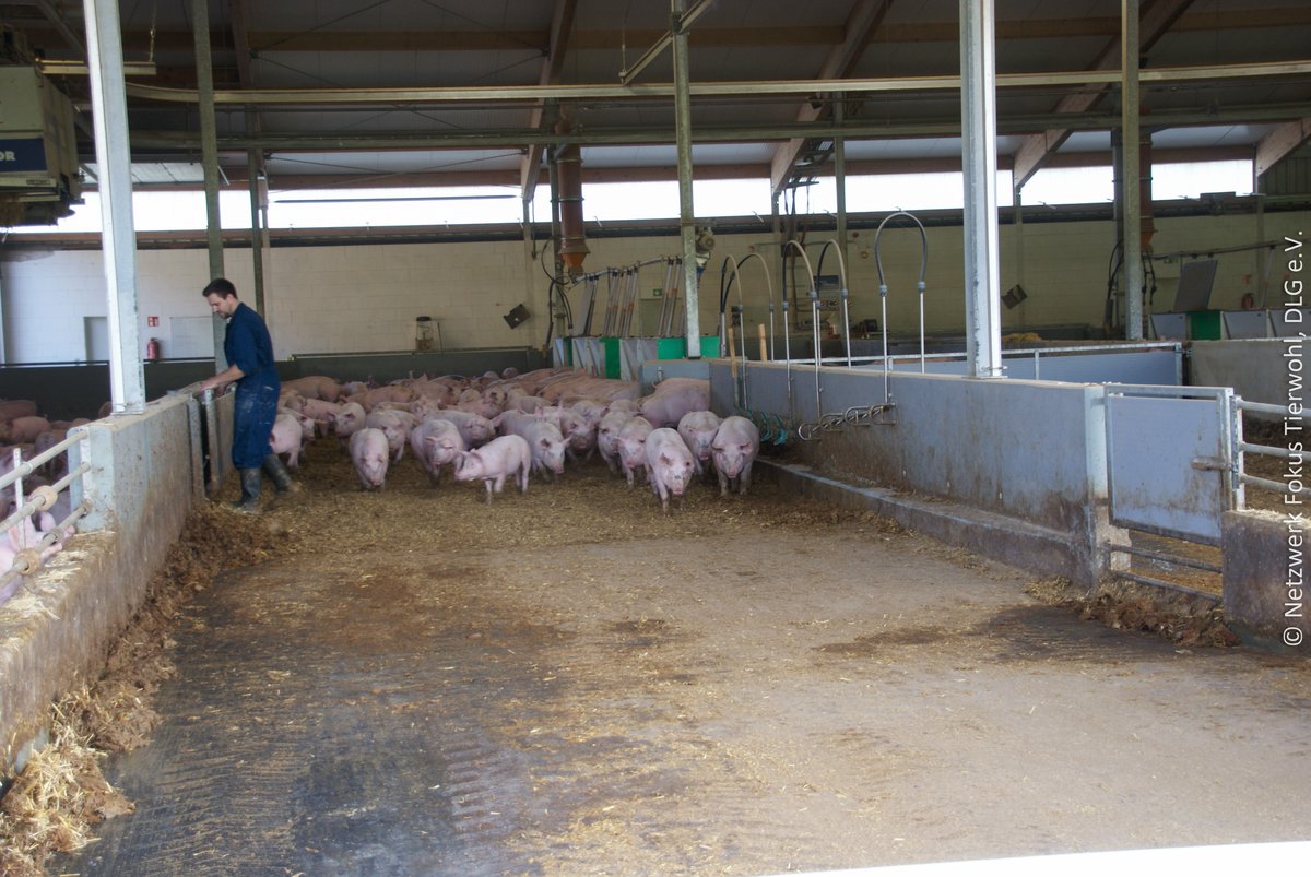 Dieses Dokument wurde im Rahmen des Verbundprojektes Netzwerk Fokus Tierwohl, Förderkennzeichen 28N-4-013-01 bis 28N-4-013-17, durch die Arbeitsgruppe „Bauen: Sauen und Mast" des Tierwohl-Kompetenzzentrums Schwein erarbeitet und durch DLG e.V und FiBL Deutschland e.V. methodisch-didaktisch aufbereitet.
