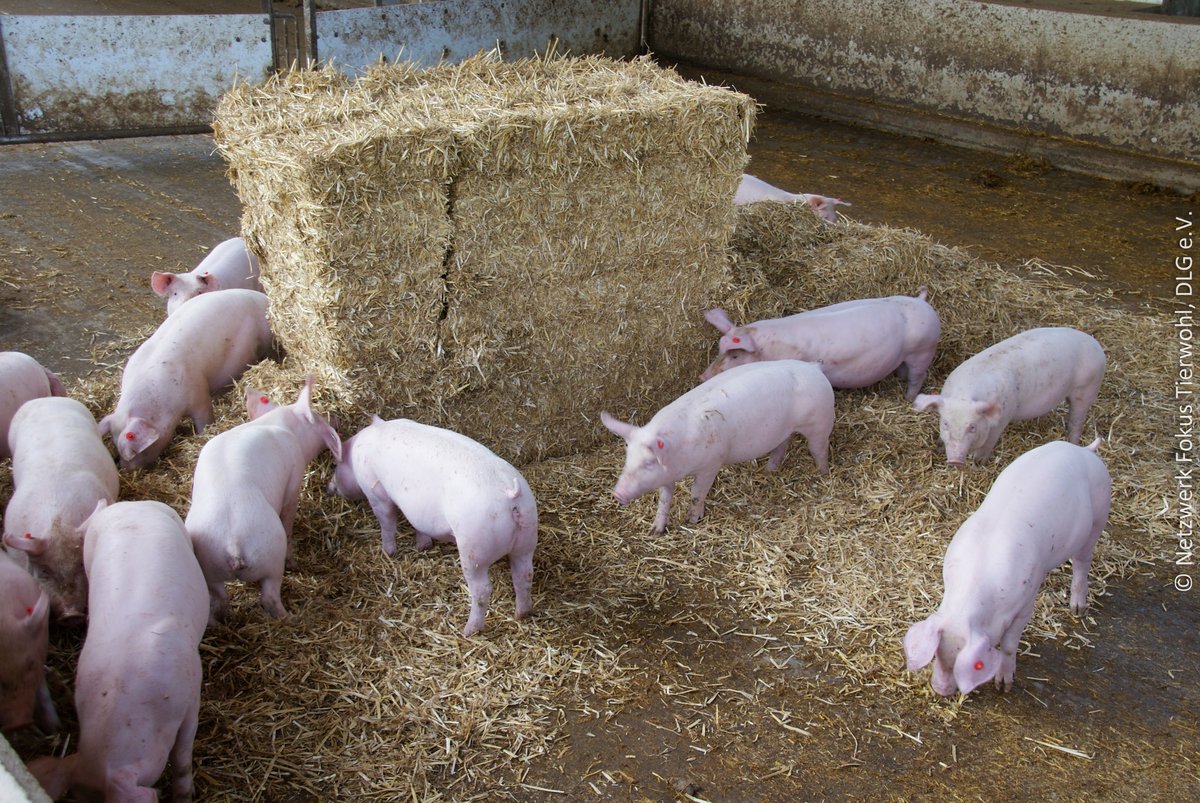 Das Tierwohl steht mehr denn je im Fokus und die Schweinehaltung im Wandel. Organisches Beschäftigungsmaterial gehört nun zum gesetzlichen Standard und strukturelle Entwicklungen führen zu mehr eingestreuten Schweineställen, zunehmend auch mit Ausläufen. Um den vermehrten Einsatz von Einstreu in der Praxis umsetzen zu können, sind auf den Betrieben ausreichend Lagermöglichkeiten für Heu und Stroh, geeignete Entmistungstechniken und auch eine fachgerechte Mistlagerung erforderlich. Dabei sind verschiedene Aspekte zu beachten, um eine gute Qualität von Heu und Stroh zu gewährleisten und Mist umweltgerecht zu lagern. Auch bei der Entmistung sollten verschiedene Punkte beachtet werden, die zum einen den Arbeitsalltag erleichtern und zum anderen die Umwelt schonen. Das Wichtigste hat die AG „Bauen: Sauen und Mast“ des Tierwohl-Kompetenzzentrums Schwein aus dem Netzwerk Fokus Tierwohl zusammengefasst.